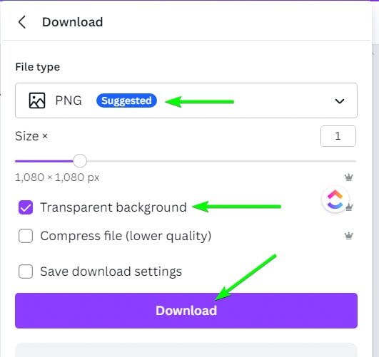Choosing PNG is essential if you want your element to have a transparent background so that you can add it to another project or background.
