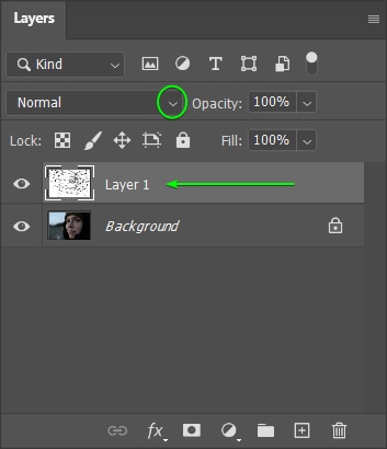 In the Layers panel, youโll see that the texture image appears above the original image. To blend the two, make sure the texture image layer is selected and click the Blend Mode drop-down. Select Screen or Overlay, whichever looks best with your chosen image.
