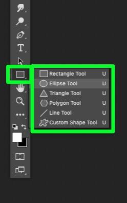 Now that your new document is open select the Ellipse Tool (U). If you donโt see it, click and hold on to the Rectangle Tool, then choose the Ellipse Tool from the sub-menu that pops up.ย