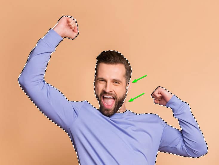 Photoshop’s AI will automatically create an accurate selection around your image. If you have a complex subject and the selection isn’t accurate, you can use a different selection method.