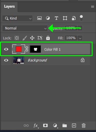To blend the new color into the shirt, you need to change the blend mode of the new fill layer.ย To do this, make sure the new fill layer is selected and click on the layer blending mode at the top of the Layers Panel. Then, select Multiply from the options in the drop-down menu.ย