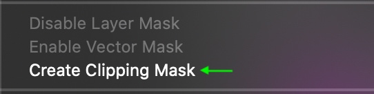 Now, apply a clipping mask in the Layers panel by right-clicking or Control + clicking the gradient layer and selecting Create Clipping Mask.