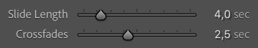 Drag to increase or decrease the Slide Length and the length of the Crossfade transition between slides.