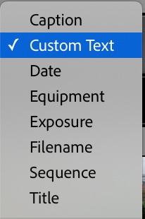You can also click Custom Text to open the pop-up menu in which you can choose the type of text displayed; you can choose to show a caption, for instance, or the date of the image.