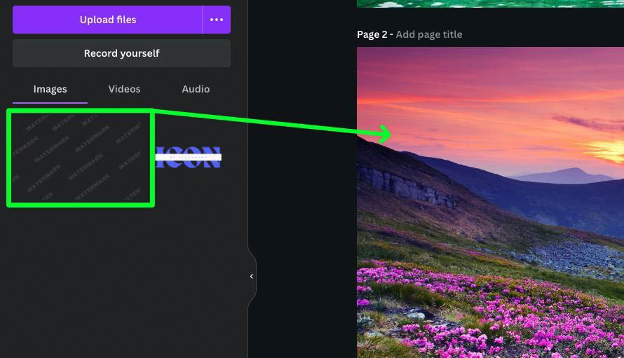 No matter which option you choose, you can now just go to your Uploads folder in Canva to drag and drop your watermark templates whenever you need them in future projects.