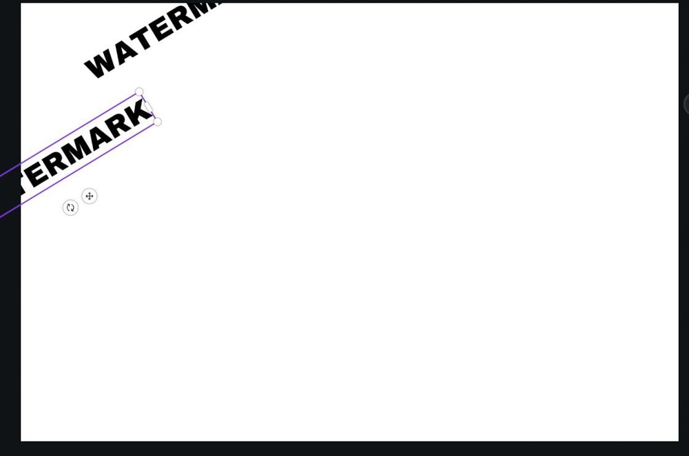 There are many ways to present your watermark; a common practice is to rotate it so it fits diagonally across the entire image. To rotate your watermark, select it, then use the Rotate Button until your text is tilted to your desired amount.