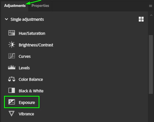 Step 1: Select The Exposure Adjustment Layer From The Adjustments Panel