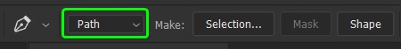 Follow the previous method to create a path on the canvas. However, set the Pen Mode to Path for this method to work.