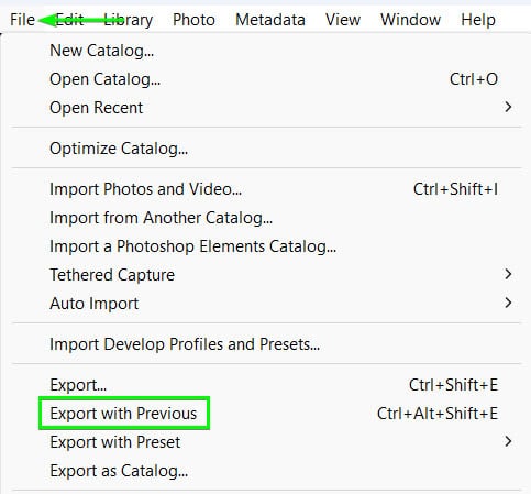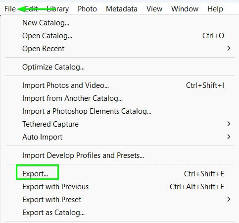 With all of your images highlighted, it’s time to export. Go up to File > Export to begin the export process.