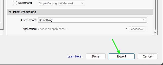 Note: It’s a good idea to go through each section in the Export Panel to ensure everything looks correct before you export. I talk about this more in-depth in my guide to exporting photos from Lightroom.