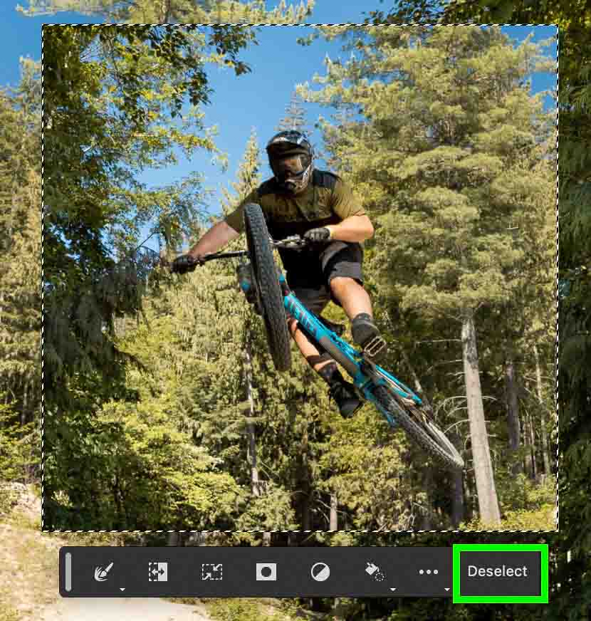 Once the selection contents of your selected layer have been flipped, deselect the selection by pressing Command + D (Mac) or Control + D (Win). You can also press Deselect in the Contextual Task Bar.