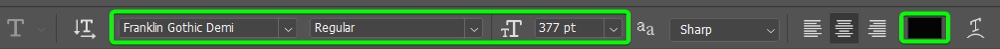 When you partially cover text with parts of an image, itโs a good idea to use a bold font so that people can still read the text. There are plenty of free fonts you can use in Photoshop. I am using Franklin Gothic Demi at a size of 377 points to fit the image.