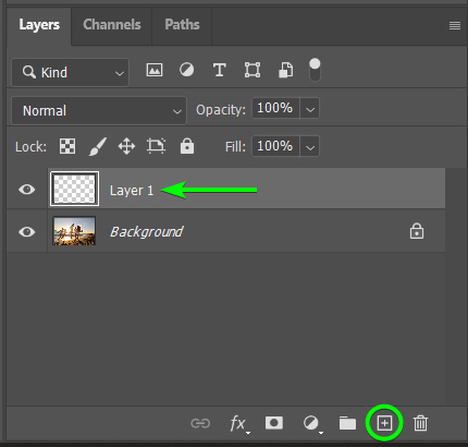 Create a new layer by clicking the New Layer button at the bottom of the Layers Panel.