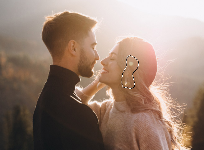First, use any selection tool to create a selection around the problematic lens flare. You only need to create a rough selection, and you should include some of the surrounding area in the selection. For this, the Lasso Tool (L) works well.
