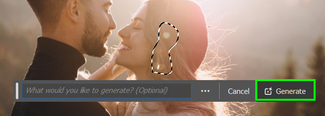 Photoshop will then give you the choice to add a prompt describing what you want to replace the selected area with. For this purpose, you can simply leave it blank and click Generate.