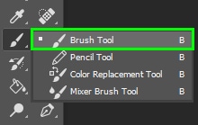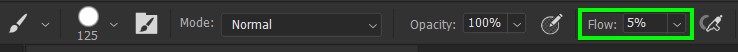 Next, go to the Toolbar and grab the Brush Tool (B). Once the Brush Tool is selected, go to The Options Bar and set the Flow to 5%. Set the Foreground Color Swatch to white by pressing D on your Keyboard.