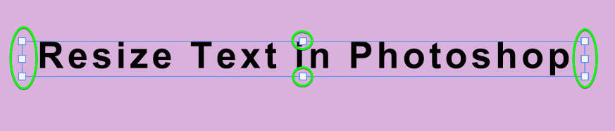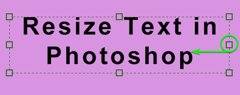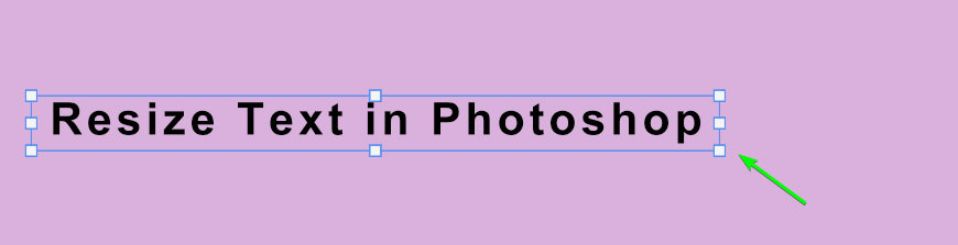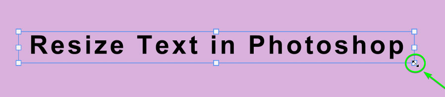 To resize the text, hover your cursor near an anchor point on the transform box. Click and drag one of the anchor points inwards to shrink the text or outwards to expand.