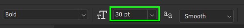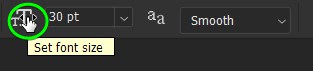 To start, highlight the text you wish to resize and ensure the Type Tool (T) is active. Then, in the Options Bar, go to the font size option. You can adjust the size here in a couple of different ways.