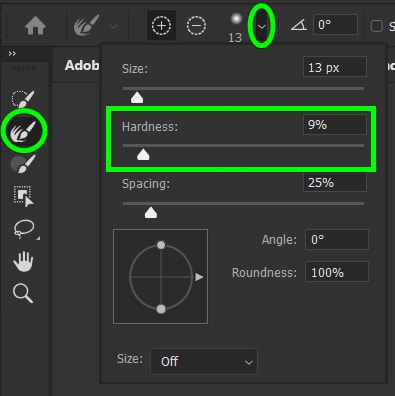 Then, use the brush tool settings to set the hardness between 1% and 10%, depending on how thick the strands of hair you want to refine are.