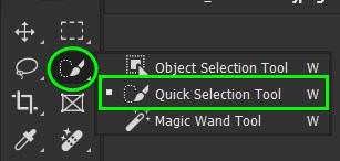 First, activate the Quick Selection Tool (W). Then, click on Select Subject in the Contextual Task Bar or in the Options Bar.
