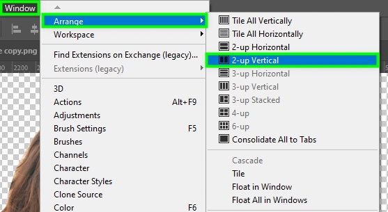 Step 3: Go To Window > Arrange > 2-Up Vertical