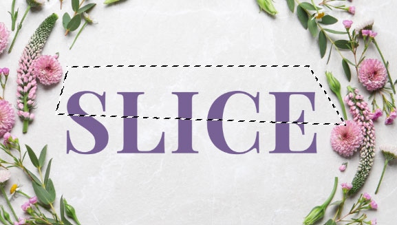 You can slice and copy more than just text. I have cut the text in the example below, as explained in the steps above. However, I went a step further and sliced part of the rose to cover the bottom edges of the text.