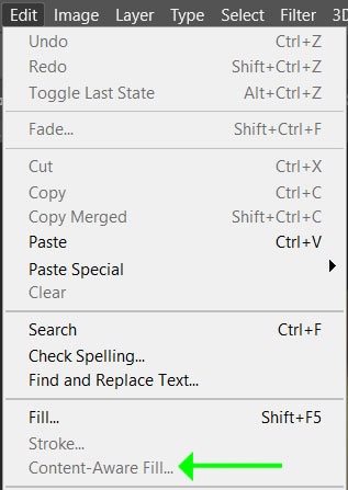 If you open the Edit menu to select the Content-Aware Fill command and it’s grayed out, you wonโt be able to open the workspace.