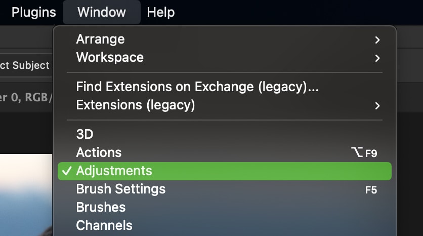 If you don’t see this panel, go to Window > Adjustments to reveal it.