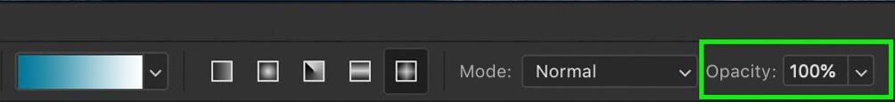 After choosing your gradient type, there are a few more settings you can adjust in the Options Bar to customize the Gradient Tool in Photoshop.