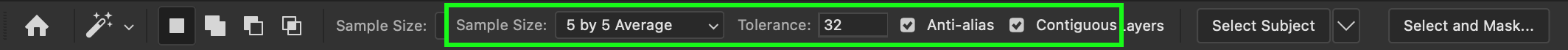 Then, go to the Options Bar to adjust a few settings. If your image has different hues, it is a good idea to increase the Sample Size so that you can add more pixels as the basis for your selection.