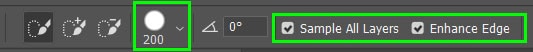 Enable Sample All Layers if you want the selection to factor in information from all layers in your project and not only the active layer. Then, enable Enhance Edge to reduce the roughness of the selection boundary. This button automatically applies edge refinement to the selection, which will help when cutting an object out of the background to produce a cleaner look.