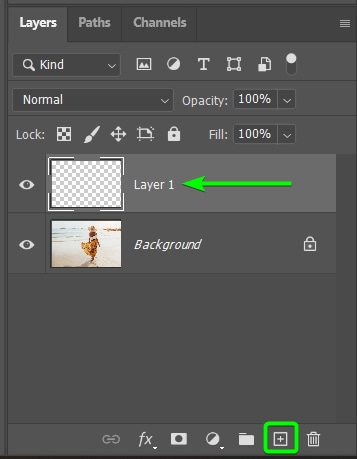 Add a new blank layer to make the edits by clicking on the Create a new layer icon at the bottom of the Layers Panel.