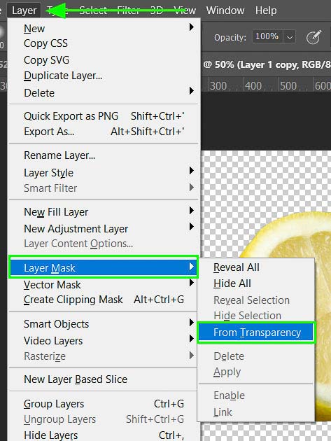 The second method is done by first making sure you have selected the desired layer you wish to create an alpha channel from.